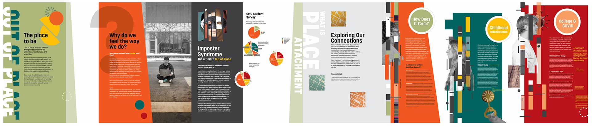 The Graphic Design capstone is the bookend for those in the selective Central Michigan University program. We get to utilize the entire gallery space on campus and create a show for whatever the class decides. Our graduating class voted on the concept of "Out Of Place." This idea was flushed out and brought to the table by my dear colleague Raegen and I. Together we started creating the overall look and feel. With selected student teams we were able to produce an outstanding show before graduation. I led as project manager, overall identity manager, and "floater" to all the attributing teams.